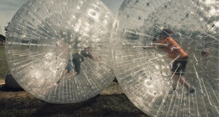 Sorgen Sie bei Ihrer Jubiläumsfeier für eine Extraportion Spaß mit einem Zorbing-Football-Match